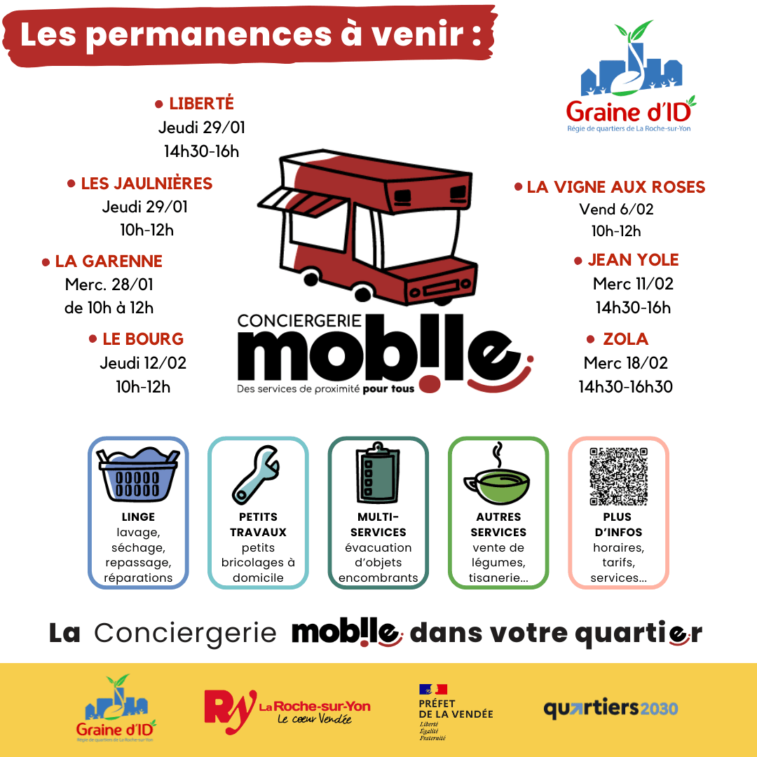 La Conciergerie Mobile : Attention modification des permanences ! Jan 27, 2026 | Actualités Attention ! Les permanences de La Conciergerie Mobile sont modifiées temporairement pour les semaines à venir ! Merci de votre compréhension !
